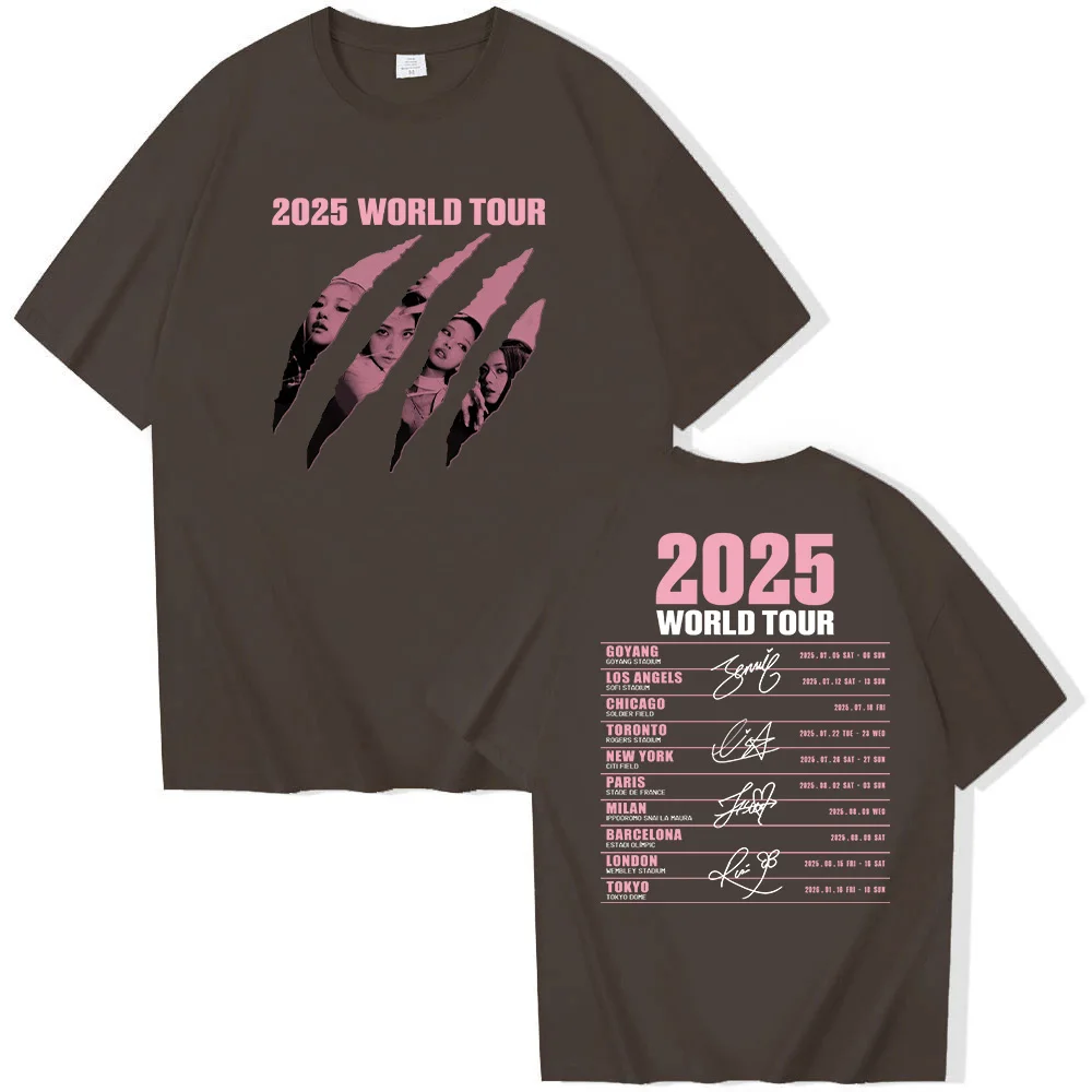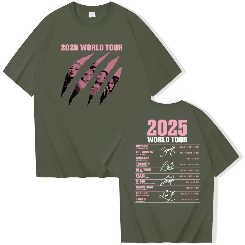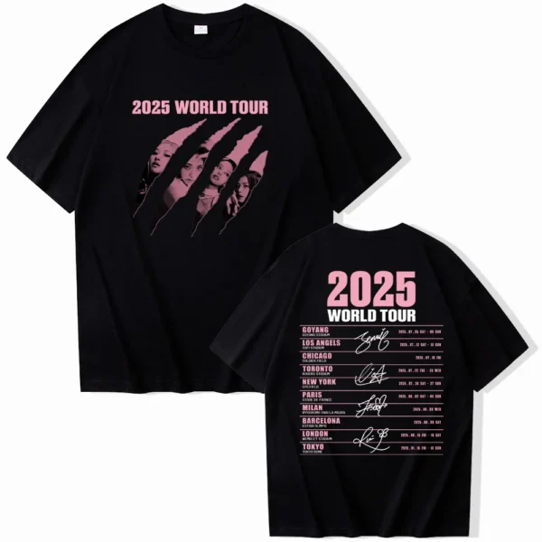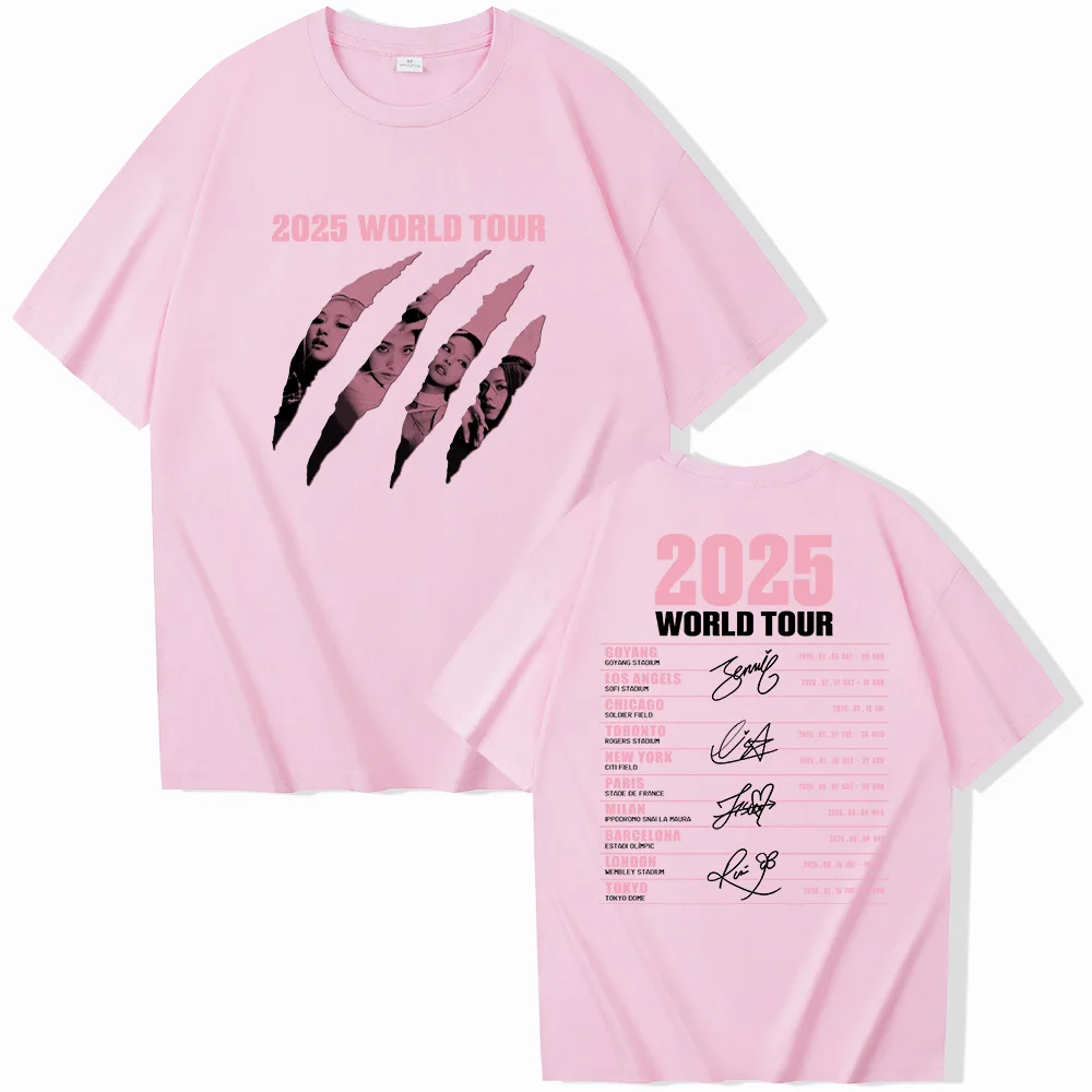T-shirt officiel inspirĂ© du Blackpink World Tour 2025 đŸŽ€đŸŒ – coupe unisexe, imprimĂ© recto-verso, disponible en plusieurs coloris.